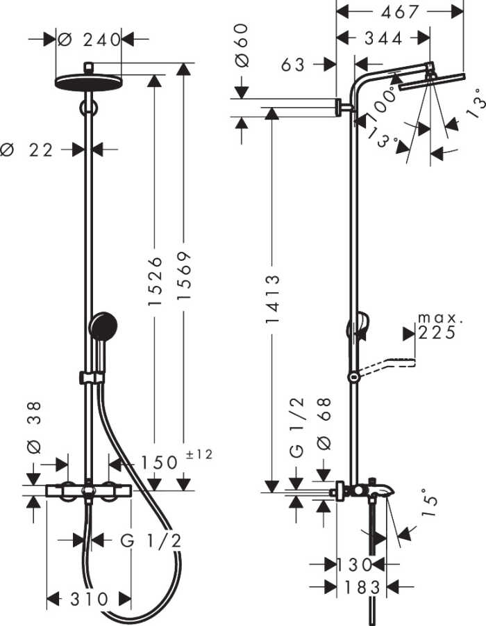 Hansgrohe Activera S Termostatik Duş Kolonu EcoSmart 28871000