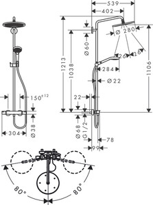 duş başlığı ölçüsü tepe duşu: 280 mm