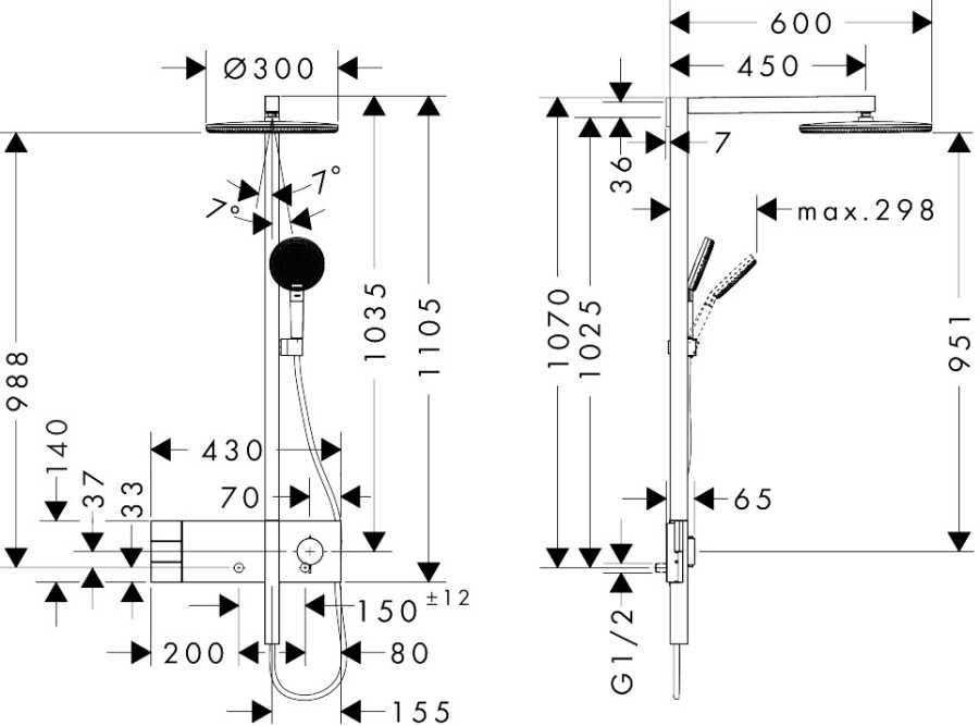 Teknik çizimdeki duş barı ölçüsünü inceledikten sonra sipariş ediniz