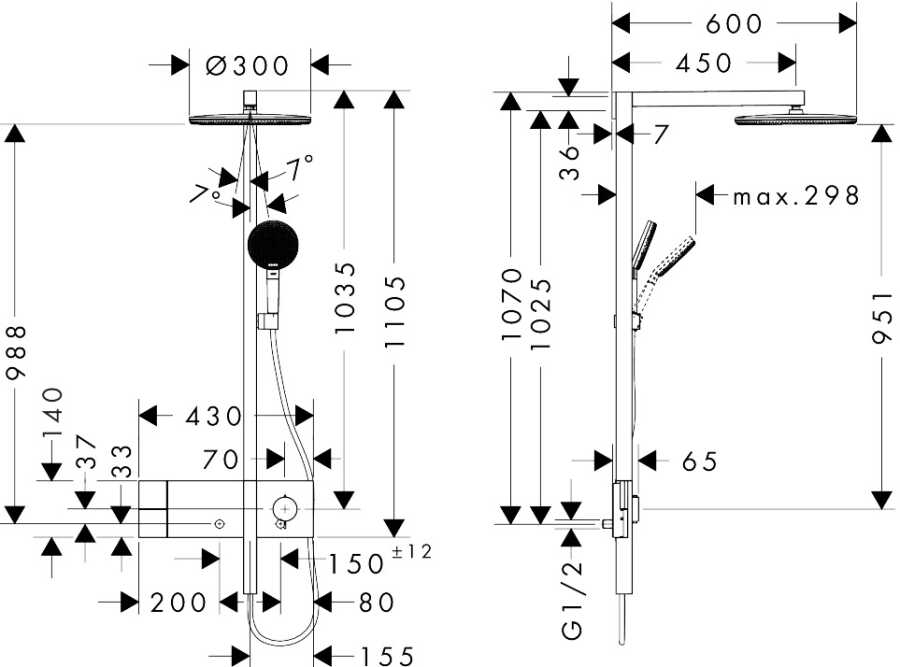 Teknik çizimdeki duş barı ölçüsünü inceledikten sonra sipariş ediniz